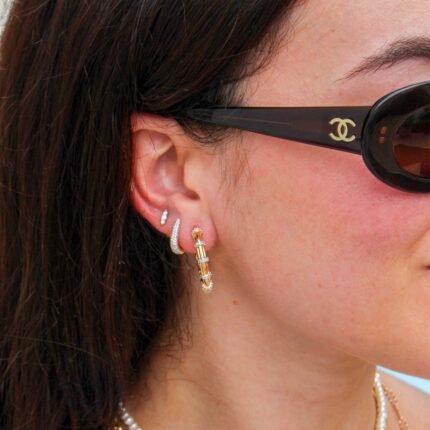 "Elegant 18k Gold Croissant Moissanite Diamond Hoop Earring – a stunning croissant-shaped hoop with Moissanite diamonds, perfect for adding a sophisticated, radiant touch."