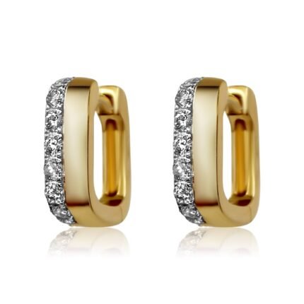 18k Gold Half Moissanite Diamond Rectangle Hoop Earring