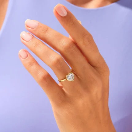 18K Solid Gold Bezel Set Heart Solitaire Natural Diamond Engagement Ring