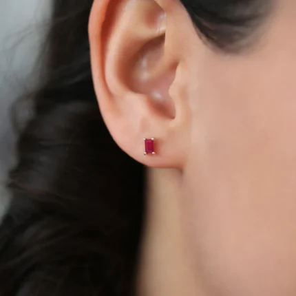 Elegant 14K solid gold earrings featuring baguette-cut rubies, offering a sleek and timeless design that adds a pop of color to any look.