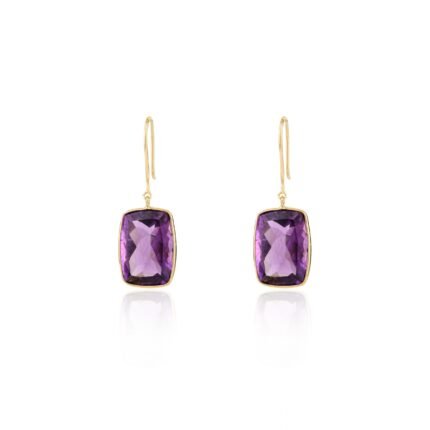 Elegant 14K solid gold dangle earrings featuring stunning amethyst gemstones that add a graceful touch of purple brilliance to any outfit.