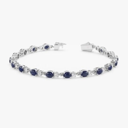 A luxurious 14K solid gold bracelet featuring blue sapphires and sparkling diamonds in a garland design, offering an elegant and timeless addition to any jewelry collection.