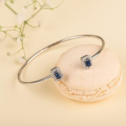 14K Solid Gold Blue Sapphire Diamond Bangle Bracelet