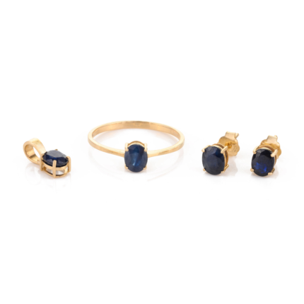 Exquisite 14K solid gold combo jewelry set with blue sapphires, combining elegance and color for a perfect addition to any collection.