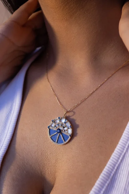 Elegant 14K solid gold blue sapphire and diamond charm, featuring a vibrant blue sapphire surrounded by sparkling diamonds for a chic and luxurious design.