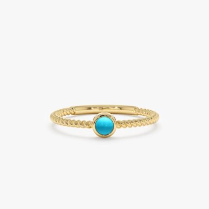Elegant 14K solid gold twisted band ring with turquoise, combining vibrant color and intricate design for a sophisticated and timeless piece.