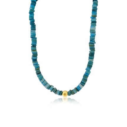 14K Solid Gold Yellow Sapphire And Blue Heishi Beaded Necklace