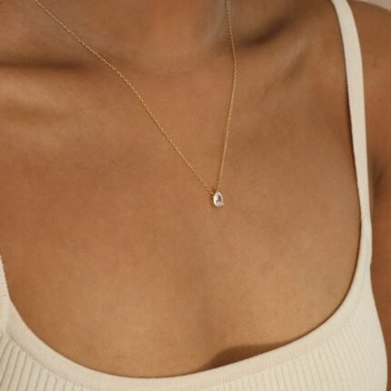 The Karat Store Minimalist Teardrop Natural Diamond Gold Necklace