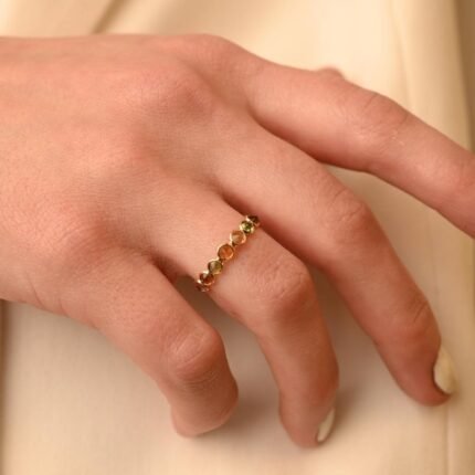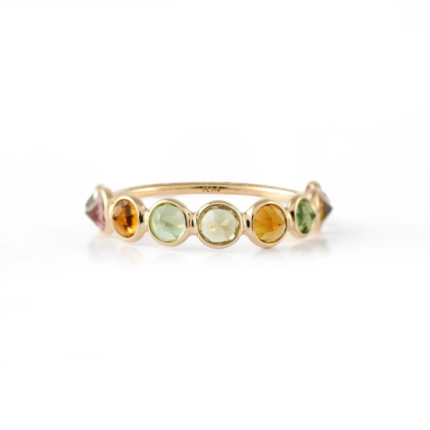 Colorful 14K solid gold half eternity band featuring vibrant multi-hued tourmalines—crafted for joyful elegance, sparkle, and everyday charm.