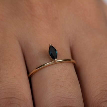 Elegant and modern, this 14K solid gold ring features a single floating marquise sapphire—perfect for minimalist style with a touch of color.