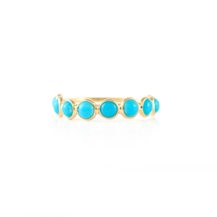 Elegant 14K solid gold turquoise half eternity band, featuring a sleek design with turquoise gemstones set halfway around the band for a stylish and timeless look.
