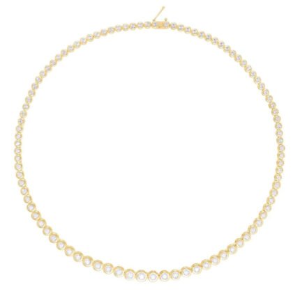 The 14K Gold Diamond Bezel Graduated Tennis Necklace is a sophisticated piece that highlights lab-grown diamonds in a graduated bezel setting. Crafted from high-quality 14KT gold, this necklace features diamonds arranged in a graduating pattern, enhancing their brilliance and creating a striking visual effect. Polished to a brilliant shine, it is perfect for any formal event or special occasion. Customization options available.