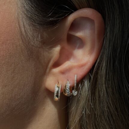 14K Gold Lab Grown Diamond Bezel Double Loop Hoop Earring