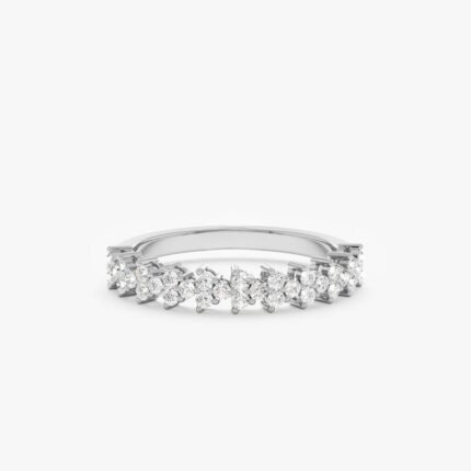 14K Solid Gold Cluster Diamond Half Eternity Ring with 0.35 ctw GH/VS-SI diamonds. Elegant tapered shank (1.8–3.4 mm). GIA & BIS certified.