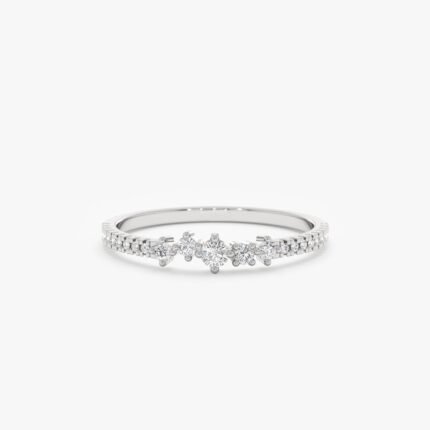 14K Solid Gold Cluster Natural Diamond Stacking Ring