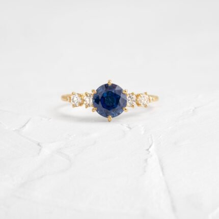 A delicate 14K gold stacking ring featuring a cluster of 0.17ct GIA-certified natural diamonds, designed for everyday elegance.
