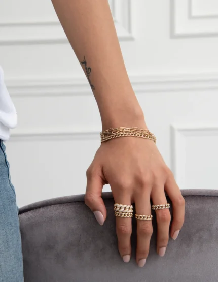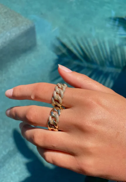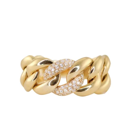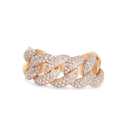 Bold 14K gold chain link ring with 240 natural diamonds (0.58 ct, GH color, VS-SI clarity). BIS Hallmarked & GIA certified.
