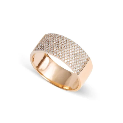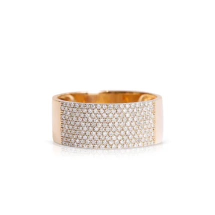 14K Gold Cigar Band Ring with Natural Diamond Edging, Natural Diamond Ring for women