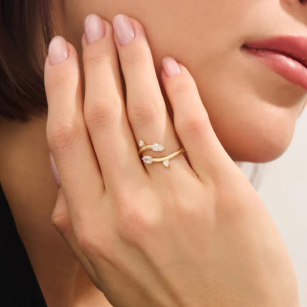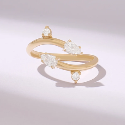 14k Gold Bypass Pear Ring: Unique Open Cuff Women’s Wedding Band