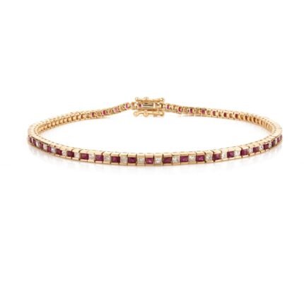 18k Solid Gold Ruby Diamond Tennis Bracelet