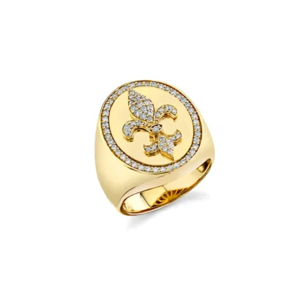 14k Gold & Diamond Large Fleur de Lis Signet Ring