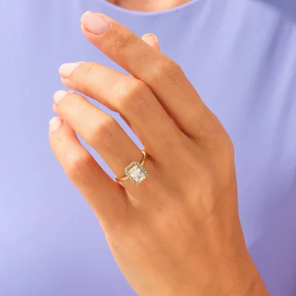 18k Solid Gold Promise Ring with 1.5 CT radiant and round natural diamonds. GH color, VS-SI clarity. GIA & BIS certified. Thin 1.60 mm band.