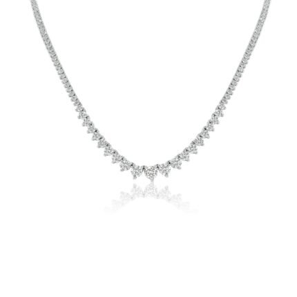 The 18k White Gold Lab-Created 3-Prong Diamond Riviera Necklace features 5.50 ct of lab-created diamonds, offering an eco-friendly and ethical choice. Set in 18k Solid Gold (available in white, rose, and yellow gold), this 17-inch necklace with a 3-prong setting radiates elegance. BIS Hallmarked and ships within 10-12 business days.
