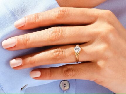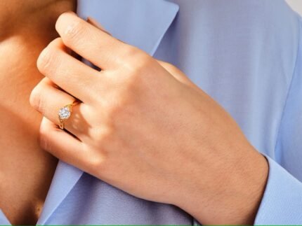 18K Solid Gold Natuarl Diamond Art Deco Engagement Ring For Women