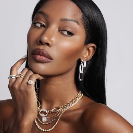 Luxurious 14K gold hoop earrings with diamond-accented multi-chain design. Available in yellow, rose, or white gold. Sold as a pair.