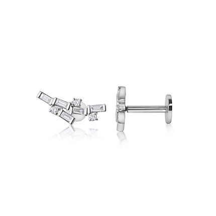 Sleek 14K gold flat back earring with baguette diamonds. Available in yellow, rose, or white gold. Sold as a single piece.