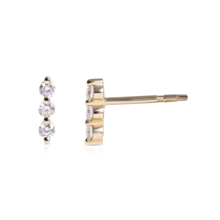 The Mia Triple Natural Diamond Bar Earrings are a stunning accessory featuring 6 diamonds totaling 0.18 ct. Crafted from 18k solid gold, these earrings are available in white, rose, or yellow gold. With a modern design and 8 mm length, they offer a chic and sophisticated look.