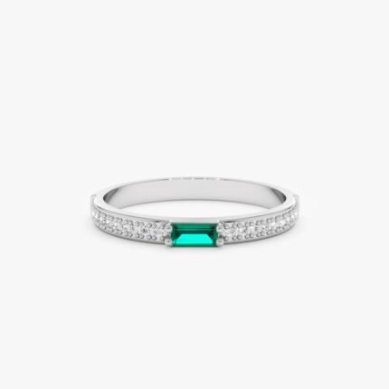 Elegant 14K solid gold ring featuring dazzling diamonds and baguette-cut emeralds—crafted for a refined, luxurious, and timeless look.
