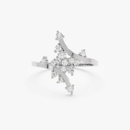 14K Solid Gold Asymmetrical Set Natural Diamond Cluster Ring
