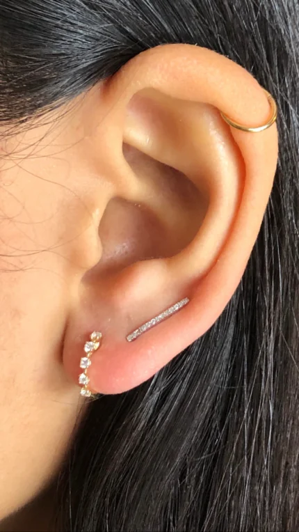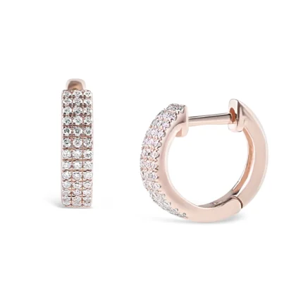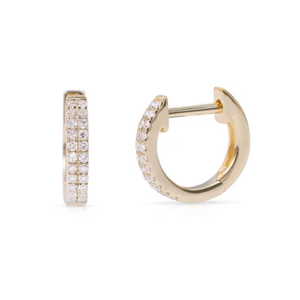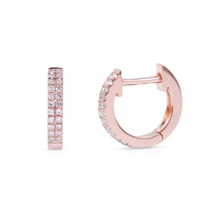 The Gigi Double Row Natural Diamond Huggies combine elegance and sophistication with 0.11 ct of diamonds, set in 18k solid gold. Available in white, rose, and yellow gold, these huggies are crafted with care and feature two rows of brilliant diamonds for a dazzling look.