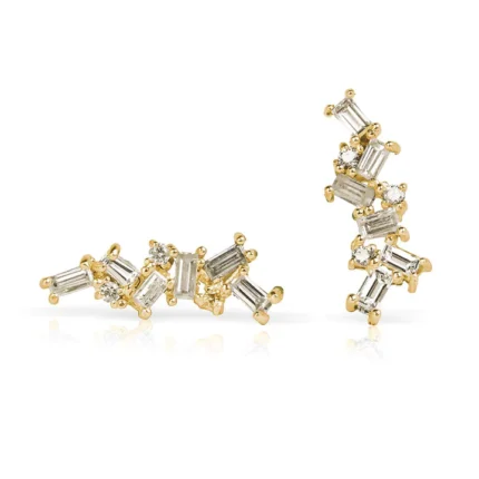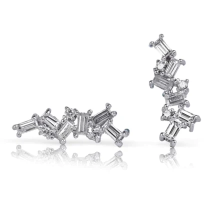 The Baguette Natural Diamond Chaos Climber Earrings are crafted in 18k solid gold, with a striking baguette cut diamond design. Available in white, rose, or yellow gold, these earrings add a modern touch to any look. BIS Hallmarked for authenticity.