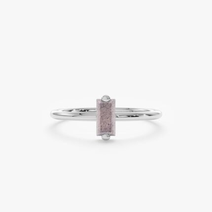 Chic 14K solid gold ring featuring a baguette-cut labradorite gemstone—modern elegance with a captivating, iridescent glow.