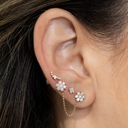 The 14K Gold Diamond Mini Baguette Prong Stud features 0.10 carats of diamond in a sleek baguette design. Measuring 4x3 mm and sold as a single, this stud adds a touch of modern elegance to any look.