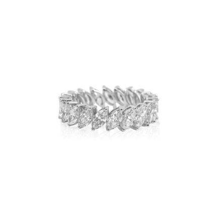 The 14K Gold Diamond Multi Marquise Lab Grown Ring features a total of 3.37 carats of lab-grown marquise-cut diamonds with VS1 clarity and F color. This exquisite ring showcases a stunning arrangement of marquise diamonds, offering a blend of timeless elegance and contemporary design.