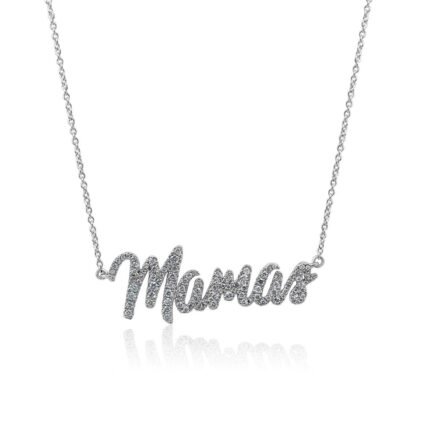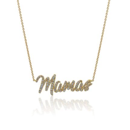 The 14K Gold Diamond Mamas Necklace features the word "Mamas" in a flowing script, embellished with 0.35 cts of lab grown diamonds. Crafted in 14KT gold, this piece combines elegance with heartfelt meaning.