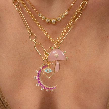 This 14K Gold Diamond Mushroom Charm combines playful design with sophisticated craftsmanship. Featuring lab-grown diamonds with VS1 clarity and F color, this charm is both unique and elegant. The 14K gold setting enhances the charm's whimsical mushroom shape, making it a delightful addition to any jewelry collection.