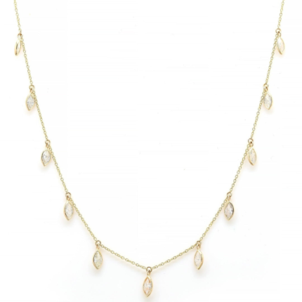 Get this Product in 18K Gold The 14K Gold Natural Diamond Charm Necklace showcases 11 exquisite marquise diamonds totaling 1.94 ct. Set in a classic bezel setting and weighing 2.702 grams, this 16-inch necklace adds a touch of elegance and sophistication to any outfit, ideal for both casual and formal occasions.