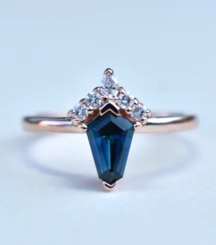 14K Gold Kite Shape Teal Sapphire Engagement Ring With Natural Diamonds
