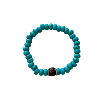 18k Solid Gold Diamond Large Turquoise Wood Beaded Bracelet