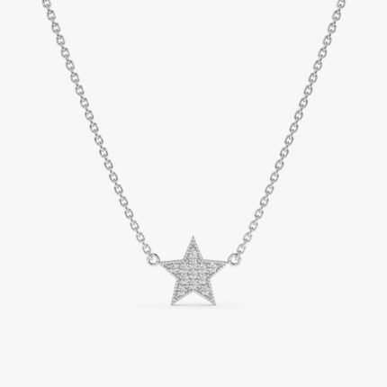 Shine bright with our Mini Pave Diamond Star Necklace. Adorned with sparkling pave diamonds, this celestial pendant, crafted in 14k gold, adds a touch of celestial charm to any look.