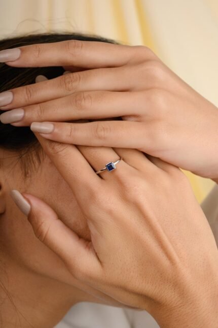 A bold 14K solid gold statement ring featuring a stunning blue sapphire, offering a vibrant and elegant design that makes a striking impression.