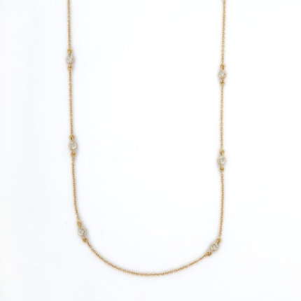 Illuminate your neckline with our 14K solid yellow gold necklace adorned with ten dazzling Natural diamonds totaling 0.15 carats. Set in delicate prong settings along a 16-inch chain, this necklace combines elegance with simplicity. It's an ideal accessory for both everyday wear and special occasions, adding a touch of sparkle and sophistication to any ensemble.