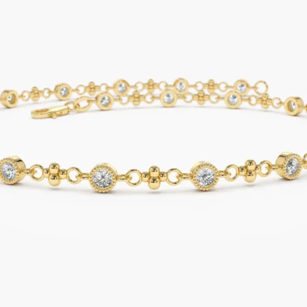 14k Bezel Setting Natural Diamond with Migraine Bracelet