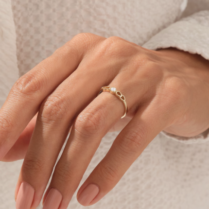 14K gold bezel-set promise ring with 0.06 ct natural diamond. Minimalist and elegant. GIA & BIS certified.