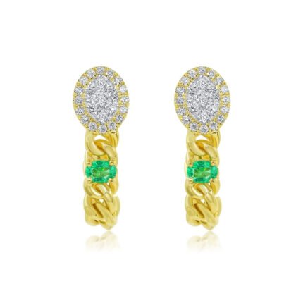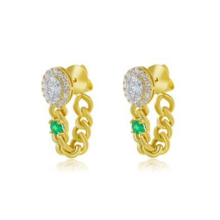 "Elegant 18k Gold Moissanite Diamond Cuban Emerald Link Loop Earring – a striking design with Moissanite diamonds and emerald links, perfect for a modern, radiant style."