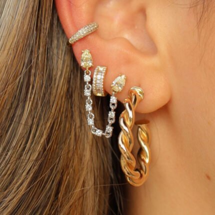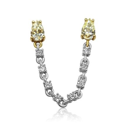 "Elegant 18k Solid Gold Two Tone Yellow Moissanite Diamond Connecting Earring – a modern design with vibrant yellow Moissanite diamonds for a striking look."